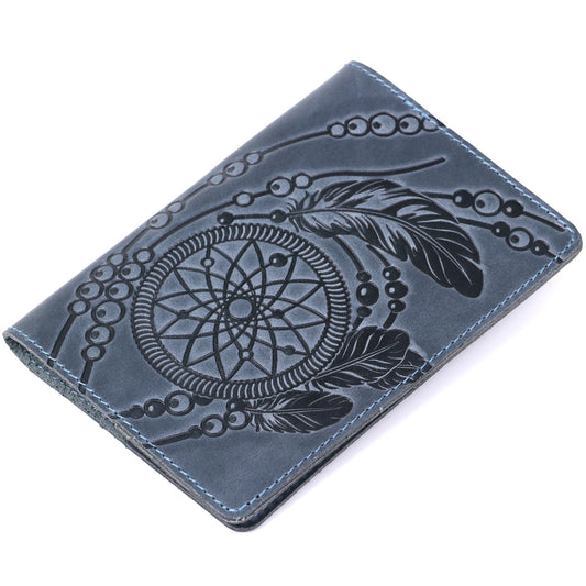Passport Cover SHVIGEL 13795 Blue Genuine Leather - Ukrainian Craftsmanship