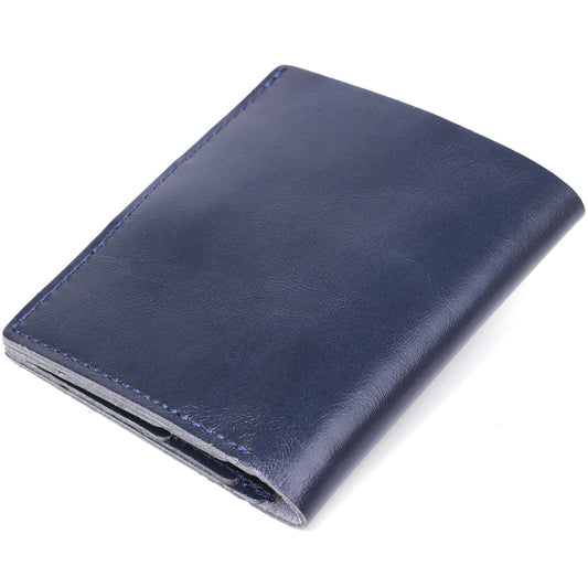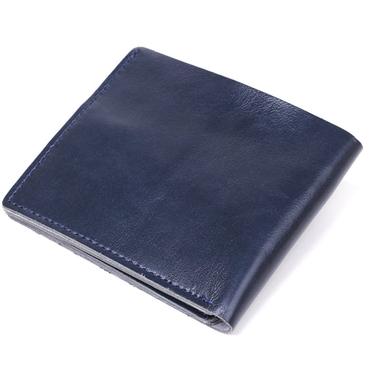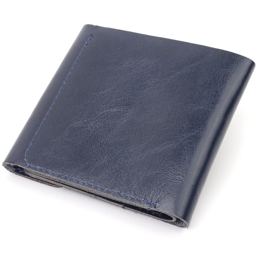 Compact Blue Leather Wallet for Men - SHVIGEL Art. 16465, Natural Leather, Made in Ukraine