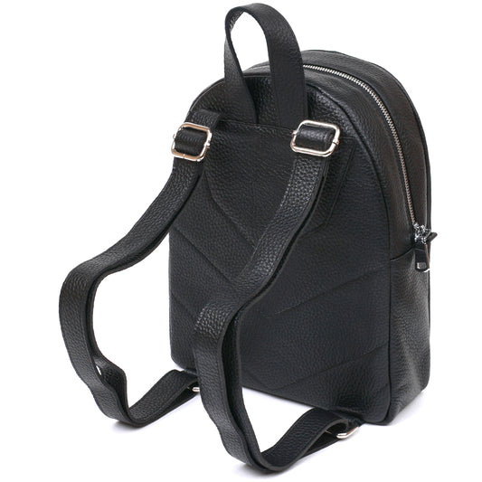 Compact Women's Backpack SHVIGEL 16317 Natural Leather Black Color Stylish Design