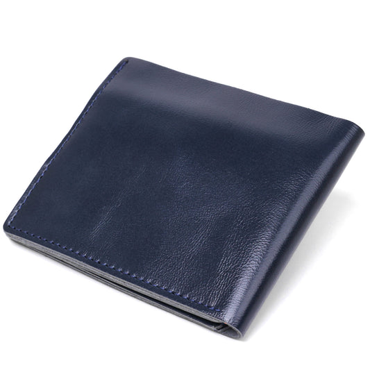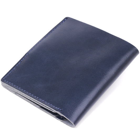 Compact Leather Wallet SHVIGEL 16444 Blue Natural Leather Made in Ukraine