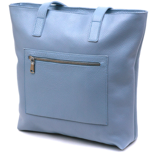 Contemporary Women's Shopper Bag SHVIGEL 16361 Light Blue Genuine Leather