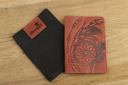 Exclusive Vintage Leather Passport Cover by SHVIGEL 13792 in Red - Crafted from Natural Leather, Made in Ukraine