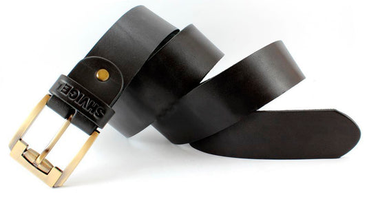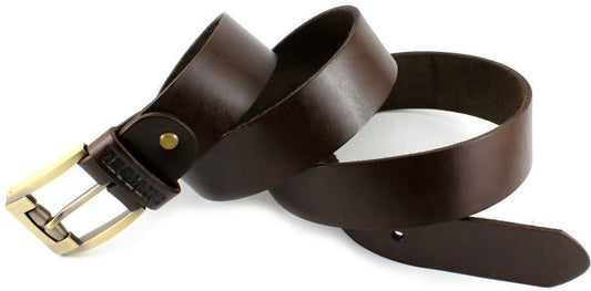 Men's Leather Belt by SHVIGEL 00023 Brown - Genuine Leather from Ukraine