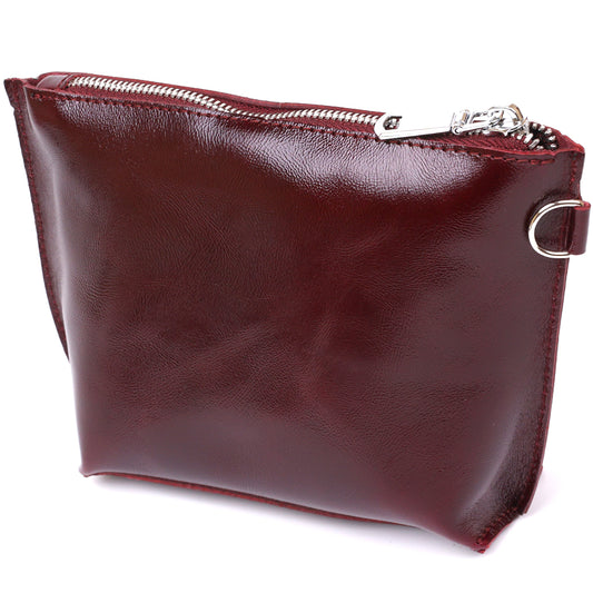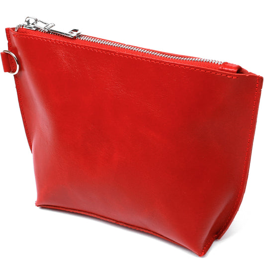Glossy Women's Cosmetic Bag SHVIGEL 16410 Red Natural Leather Stylish Design