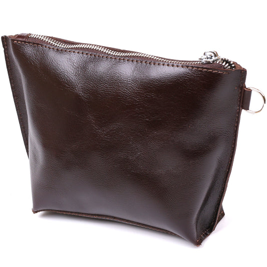 Glossy Leather Cosmetic Bag SHVIGEL 16407 Brown Genuine Leather Made in Ukraine