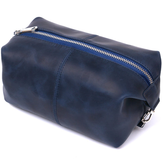 Premium Leather Cosmetic Bag SHVIGEL 16401 Blue - Made in Ukraine with Natural Leather