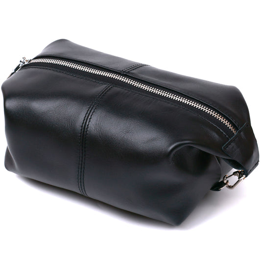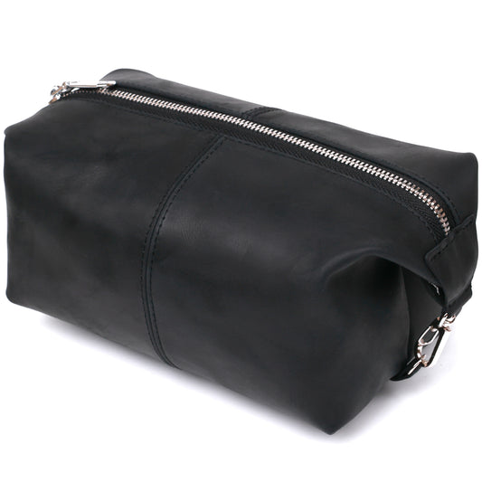 Unisex Matte Leather Travel Cosmetic Bag SHVIGEL 16426 Black Made in Ukraine