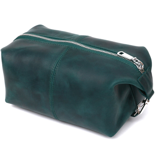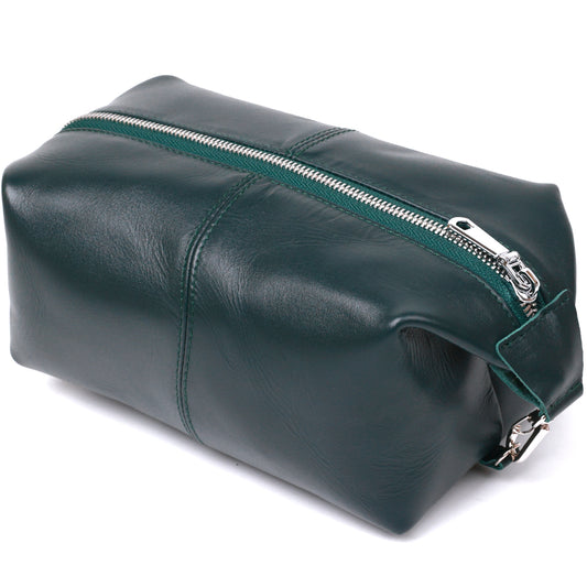 Leather Travel Cosmetic Bag SHVIGEL 16423 Green Natural Leather Design