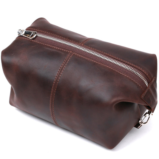 Vintage Leather Cosmetic Bag SHVIGEL 16398 Brown - Natural Leather, Made in Ukraine