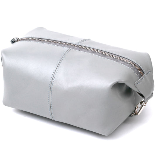 Practical Leather Cosmetic Bag SHVIGEL 16404 Gray Natural Leather Material
