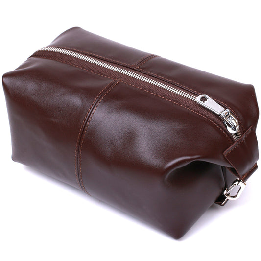 Leather Cosmetic Bag SHVIGEL 16414 Brown - Natural Leather, Compact Design for Essentials