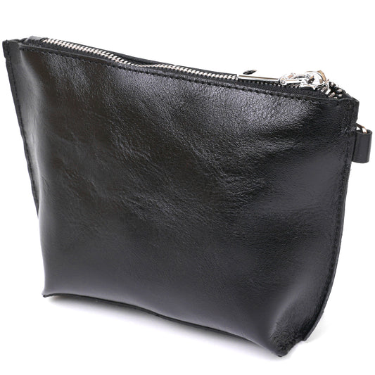 Comfortable Leather Cosmetic Bag SHVIGEL 16409 Black Natural Leather, Made in Ukraine