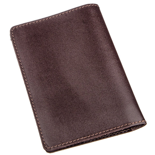 Compact Document Cover SHVIGEL 13979 Brown Genuine Leather, Made in Ukraine