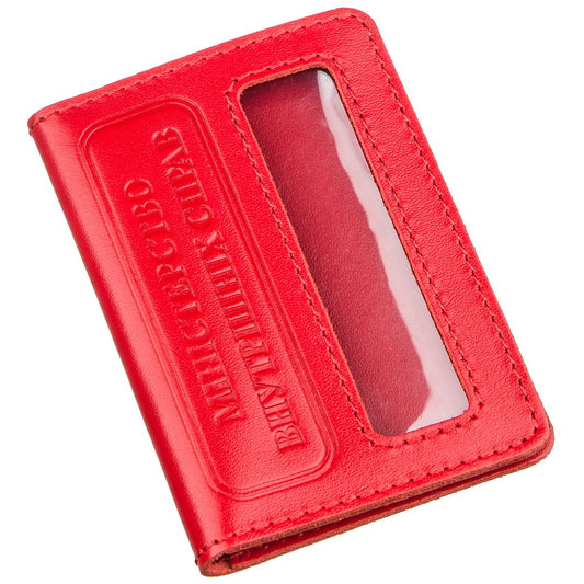 Compact Document Cover SHVIGEL 13978 Red Genuine Leather for MVS Ukraine