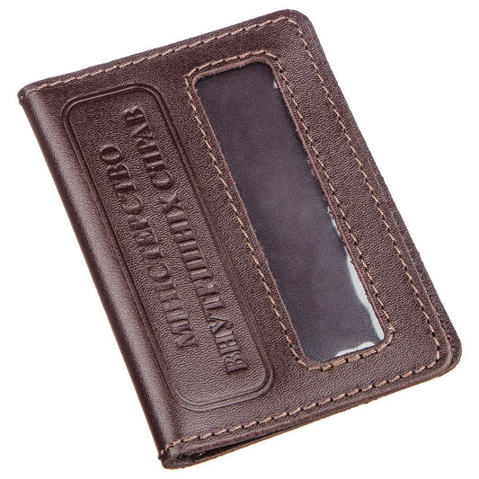 Leather Document Holder for Driver's License or ID Card SHVIGEL 13963 Brown Genuine Leather, Made in Ukraine