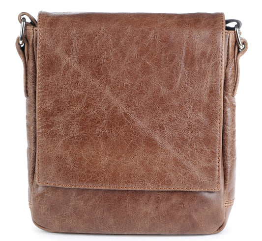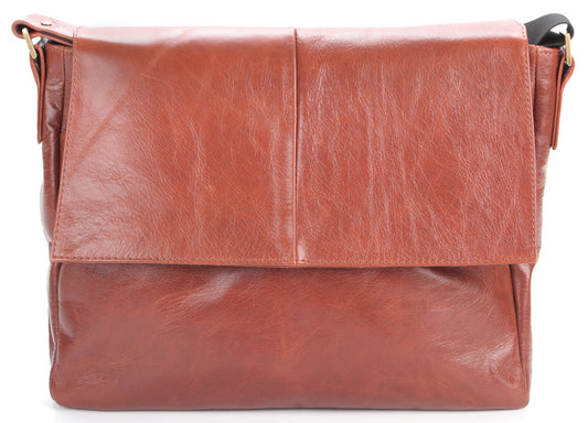 Leather Messenger Bag SHVIGEL 00899 Brown Genuine Leather, Made in Ukraine