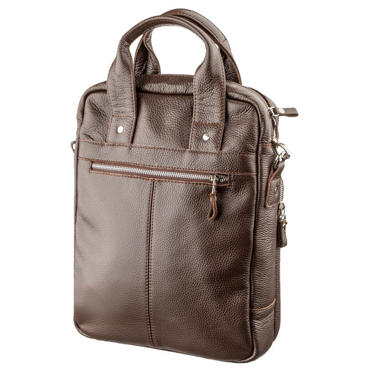 Men's Leather Tablet Bag SHVIGEL 11285 Brown with Two Compartments, Ukrainian Crafted