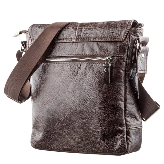 Messenger Bag SHVIGEL 00886 Brown Genuine Leather Handmade in Ukraine
