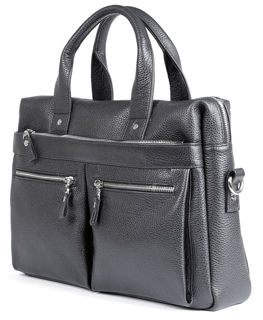 Leather Laptop Bag SHVIGEL 00975 Black, Made in Ukraine, Premium Natural Leather