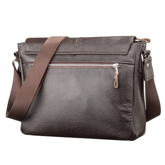 Leather Messenger Bag SHVIGEL 00899 Brown Genuine Leather, Made in Ukraine