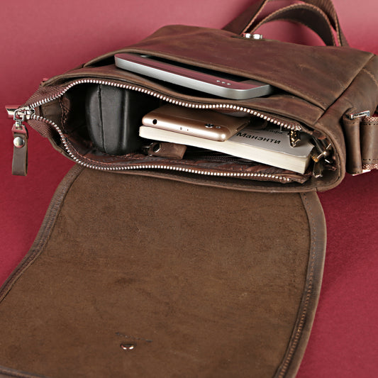 Vintage Leather Bag SHVIGEL 11077 Brown Natural Leather Handmade in Ukraine