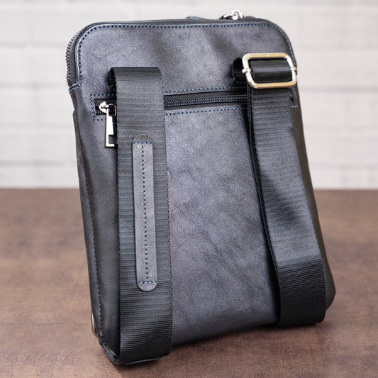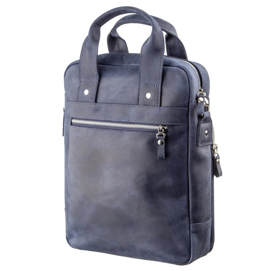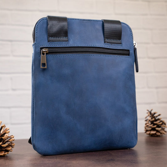 Stylish Men's Vintage Leather Messenger Bag SHVIGEL 11179 Blue, Made in Ukraine, High Quality Genuine Leather