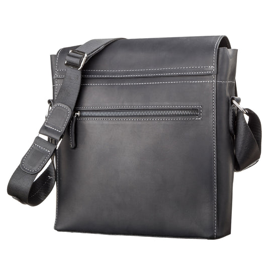 Men's Leather Bag SHVIGEL 11117 Black Crafted from Natural Leather in Ukraine