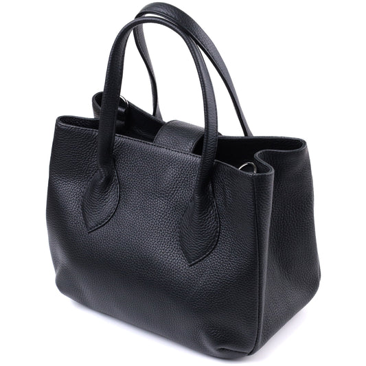 Leather Handbag by SHVIGEL 22829 - Elegant Black Design with Two Handles from Ukraine