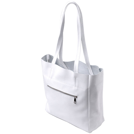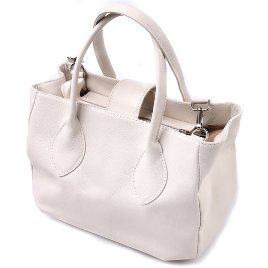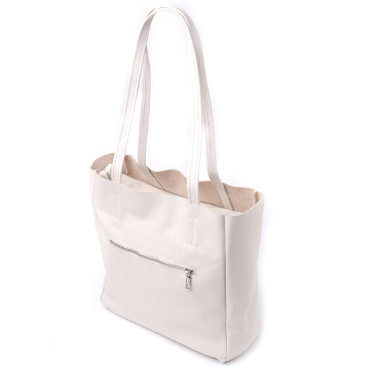 Practical White Leather Shopper Bag SHVIGEL 22844 - Made in Ukraine, Premium Quality