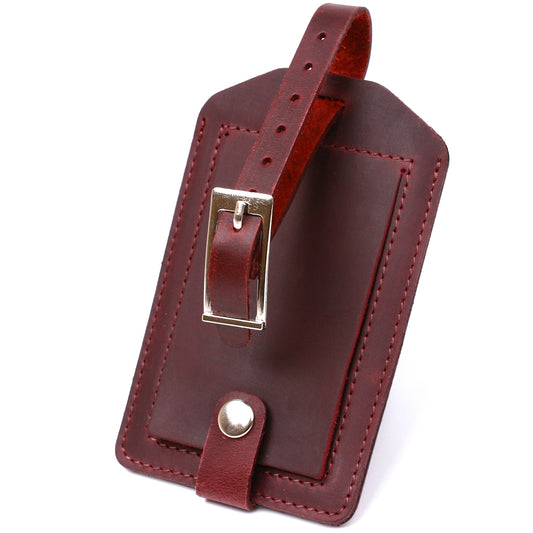 Vintage Matte Leather Luggage Tag SHVIGEL 16558 Burgundy Natural Leather