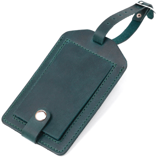 Matte Leather Luggage Tag SHVIGEL 16557 Green Natural Leather for Travel