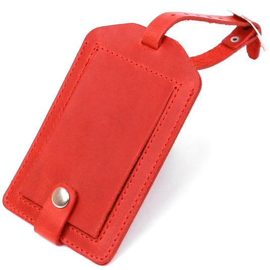 Vintage Leather Luggage Tag SHVIGEL 16556 Red - Handmade Ukrainian Natural Leather