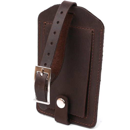 Vintage Leather Luggage Tag by SHVIGEL 16555 Brown Color - Made in Ukraine, Premium Natural Leather