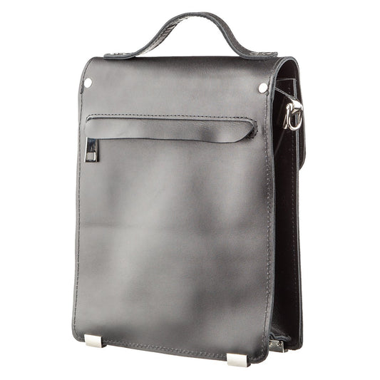 Men's Leather Shoulder Bag SHVIGEL 19116 Black Natural Leather Handmade