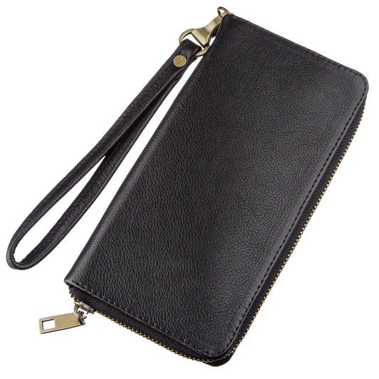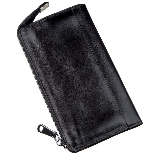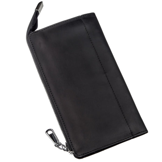 Unisex Leather Clutch SHVIGEL 16186 Black, Made in Ukraine, Natural Leather