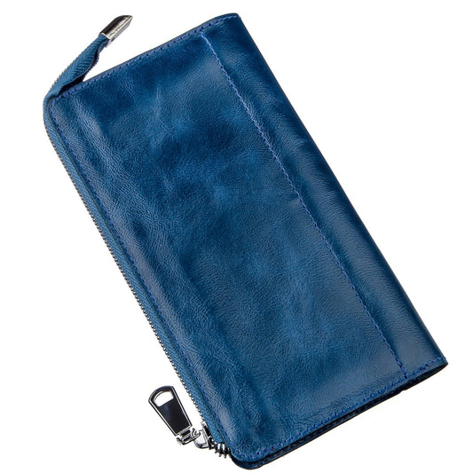 Unisex Leather Clutch SHVIGEL 16183 Blue Natural Leather Premium Quality
