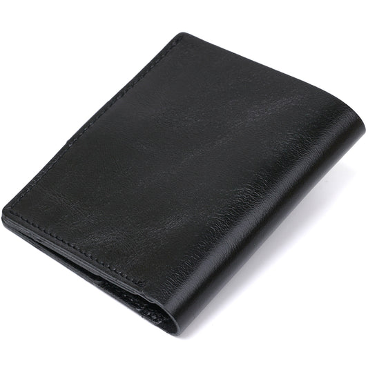 Men's Practical Wallet SHVIGEL 16502 Black Genuine Leather Ukrainian Craftsmanship