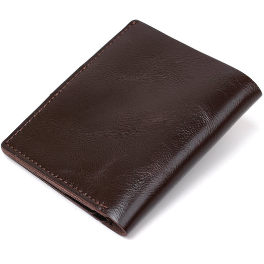 Stylish Leather Wallet for Men SHVIGEL 16485 Brown Natural Leather Ukrainian Craftsmanship