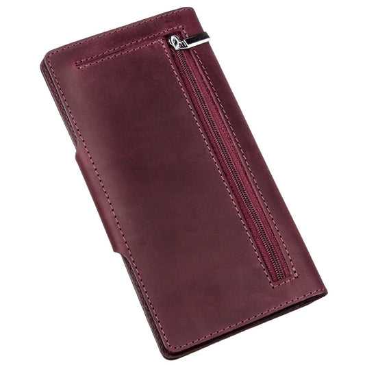 Vertical Women's Wallet SHVIGEL 16178 Vintage Leather with Buttons Burgundy, Made in Ukraine