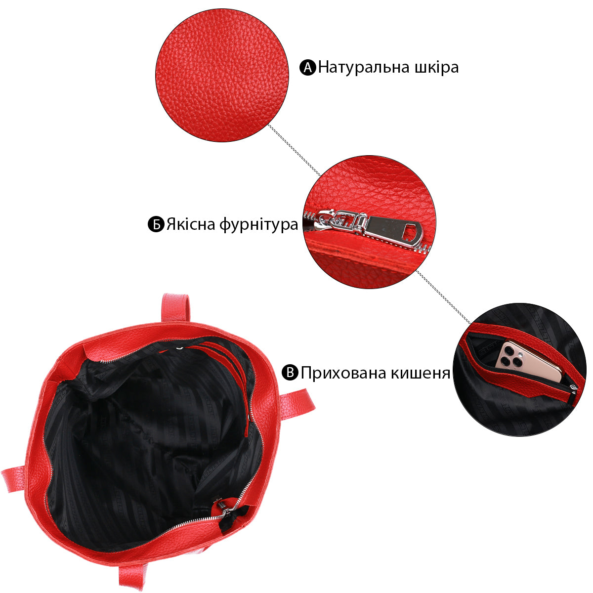 Leather Women's Bag SHVIGEL 16355 Red, Made in Ukraine, Genuine Leather Material