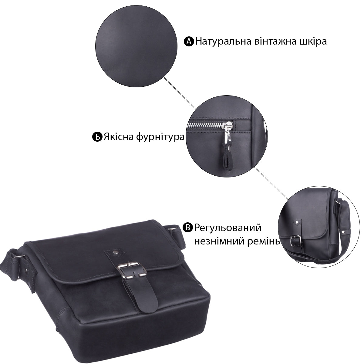 SHVIGEL Leather Bag 11037 Black - Genuine Ukrainian Leather, Stylish Design