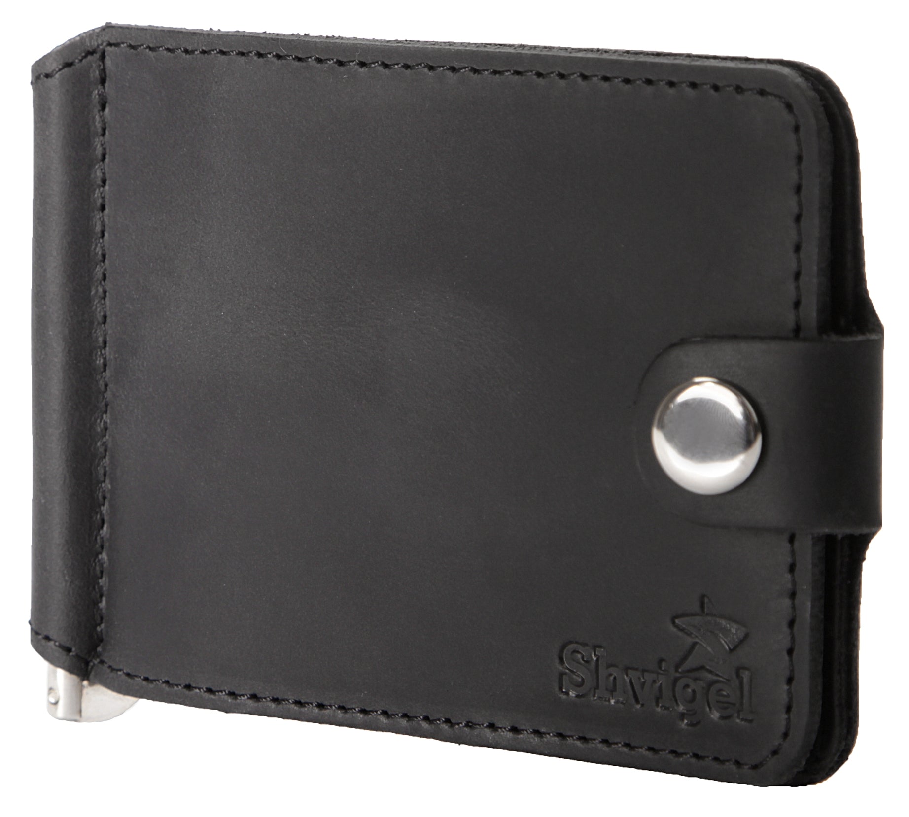 Vintage Leather Money Clip SHVIGEL 13787 Black Genuine Leather Ukraine